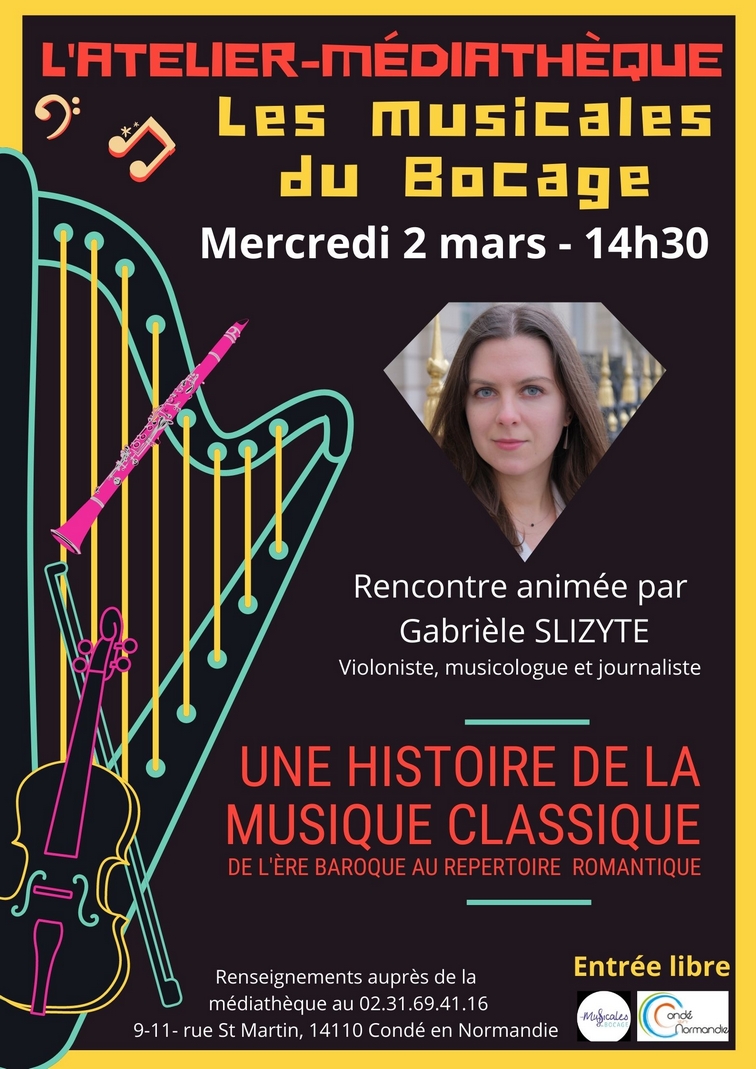 Rencontre avec Gabrièle Slyzite, violoniste, musicologue et journaliste pour “Une histoire de la musique classique” à 14h30. Entrée libre.
