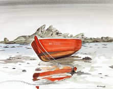 Bateau rouge échoué, Brignogan, aquarelle, coll particulière